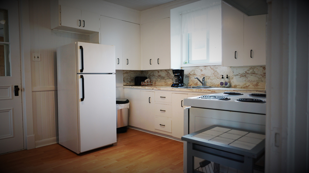 Comprenant cafetière, micro-onde et grille-pain ainsi que les électroménagers.