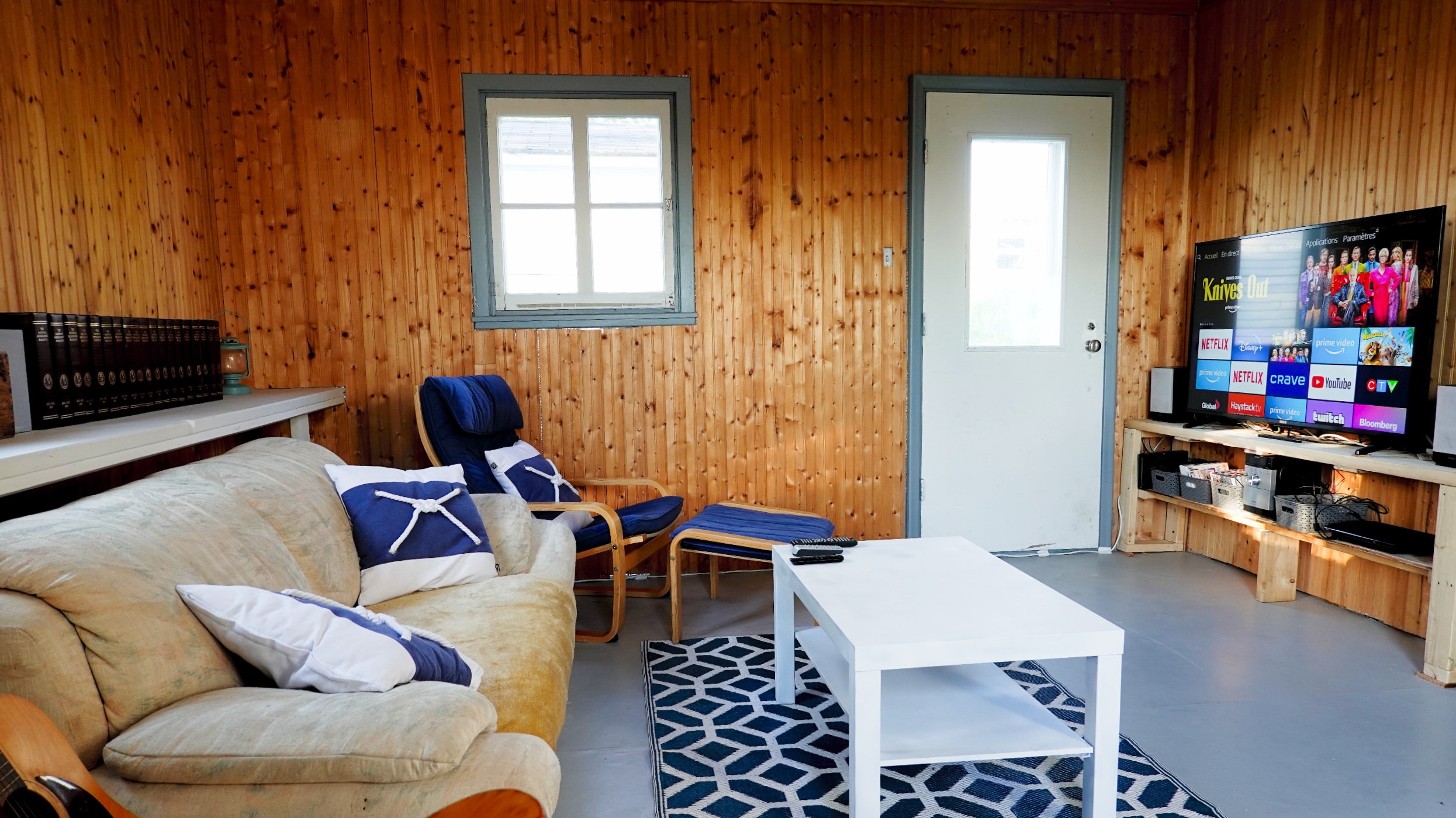 Comprend deux téléviseurs 4k (très haute définition) câblés avec services de visionnement en continu Netflix, Disney+ et Amazon Video.