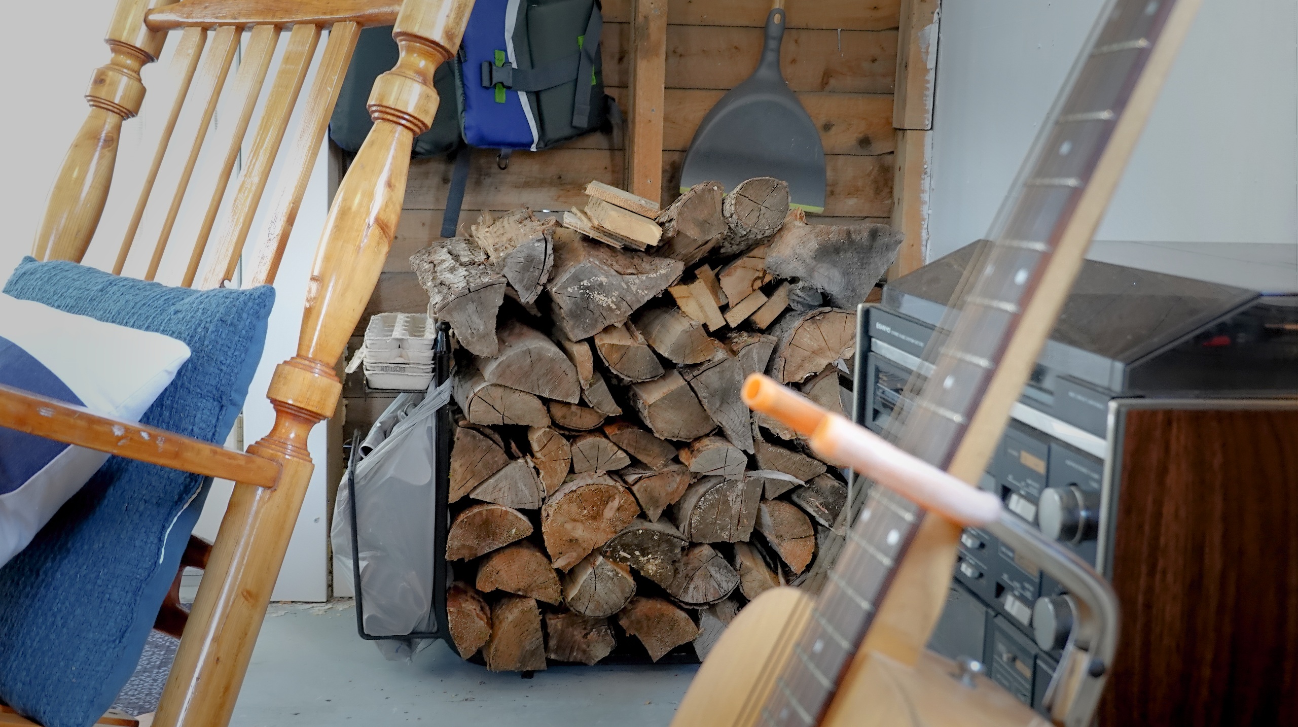 Coin feu couvert avec 4 chaises et bois inclus.